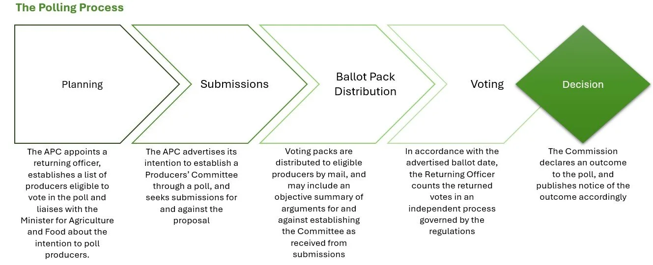 In 2024, the WA Farmers Dairy Council wrote to the Agricultural Produce Commission (APC) tor request a poll of dairy producers for the purposes of establish a new APC Dairy Producers Committee (DPC). As part of the polling process, all Western Australian dairy producers will have the opportunity to have their say by casting their ballot.